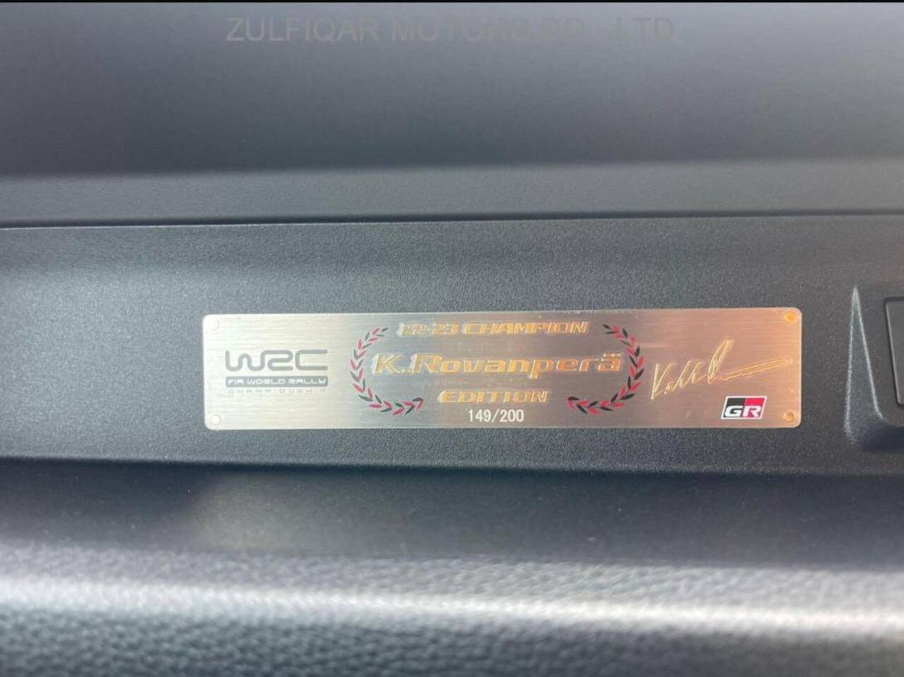 -The steering wheel stitch colour matches the colours of the national flag of each driverโs home country . Also, an exclusive plate commemorating TGRโs winning of the WRC is mounted on the instrument panel in front of the passenger seat.