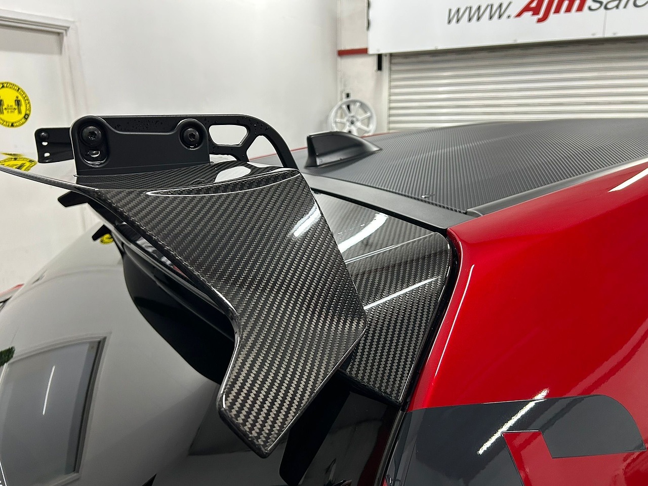 A newly developed (CFRP) lightweight rally spoiler and the same (variable-wing, CFRP) rear spoiler as on the Rovanperรค Edition improve aerodynamic characteristics.