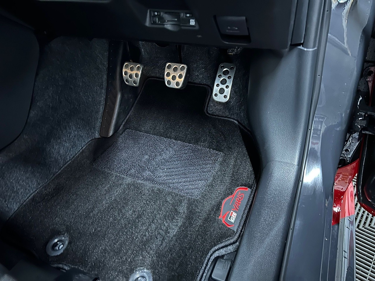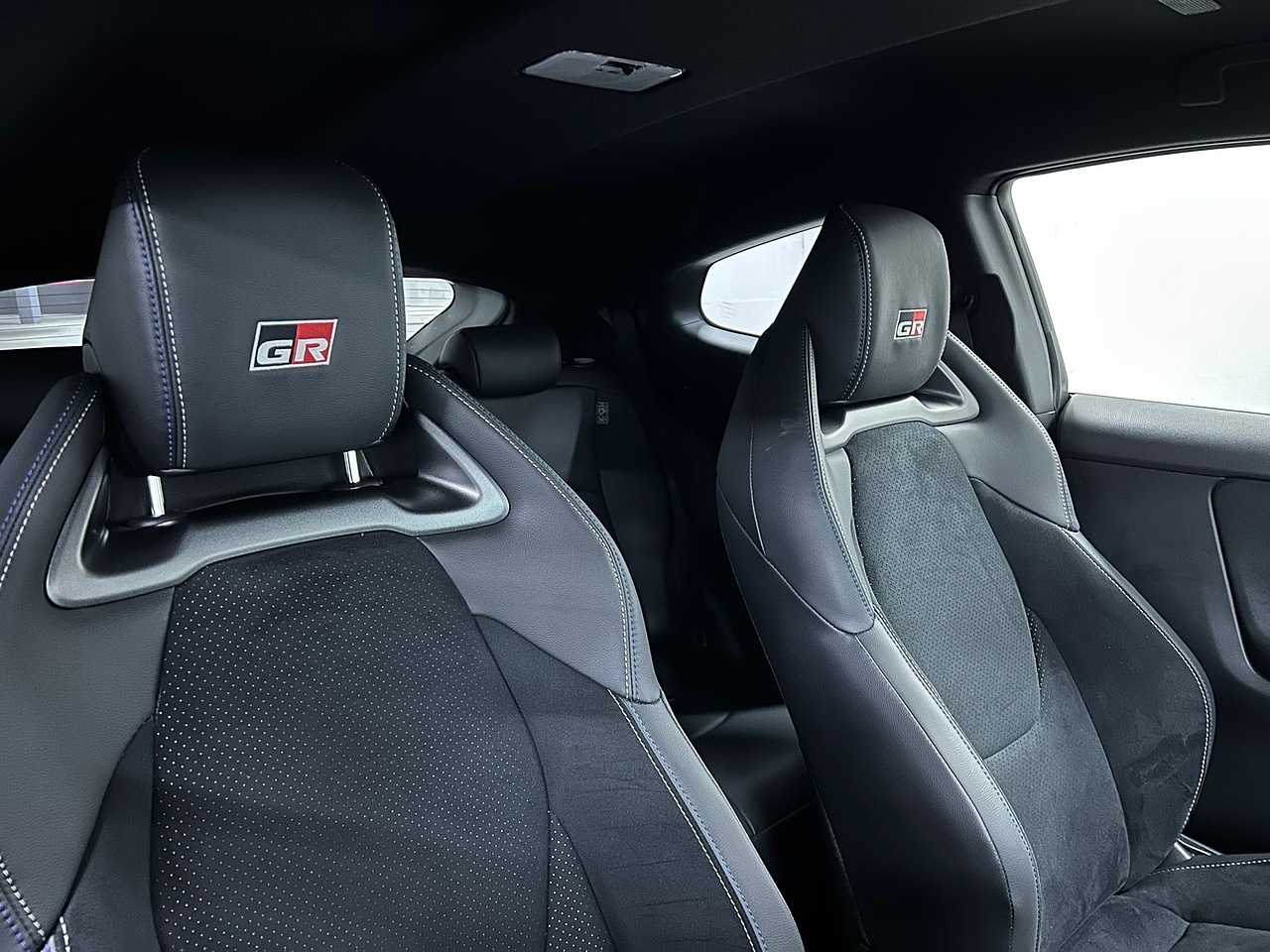 -The steering wheel stitch colour matches the colours of the national flag of each driverโs home country . Also, an exclusive plate commemorating TGRโs winning of the WRC is mounted on the instrument panel in front of the passenger seat.